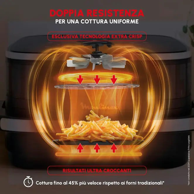 La versatilità è il suo vero punto di forza. Oltre alle patatine, puoi cucinare crocchette, pesce, ali di pollo e persino dolci come i biscotti o pizze intere. La tecnologia avanzata assicura che ogni pietanza sia cotta alla perfezione, offrendoti infinite possibilità creative per ogni pasto della giornata.